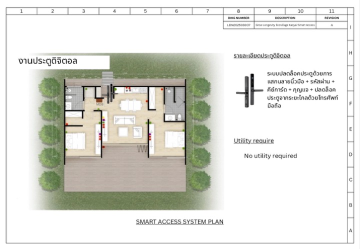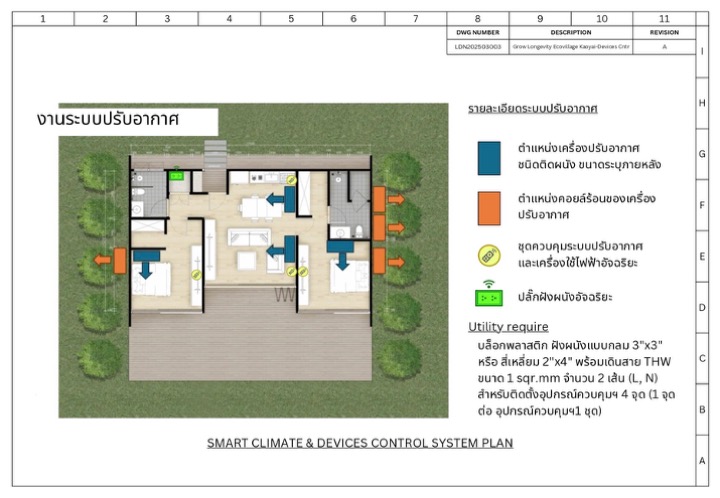 8. ระบบรองรับพลังงานสะอาดและยานยนต์ไฟฟ้า (EV & Future Energy Ready) รองรับการติดตั้ง EV Wall Charger มาตรฐานสากล ควบคุมผ่านแอปและ RFID พร้อมโครงสร้างบ้านที่เตรียมรองรับเทคโนโลยีพลังงานสะอาดในอนาคต สอดคล้องกับแนวคิด Low Carbon Living Grow Longevity Ecovillage เราไม่ได้ถูกออกแบบการอยู่อาศัยเพียงเพื่อ “วันนี้” แต่เป็นบ้านที่ เติบโตไปพร้อมผู้อยู่อาศัย ปลอดภัย ประหยัดพลังงาน ใส่ใจสุขภาพ และพร้อมรองรับการใช้ชีวิตในระยะยาวอย่างแท้จริง