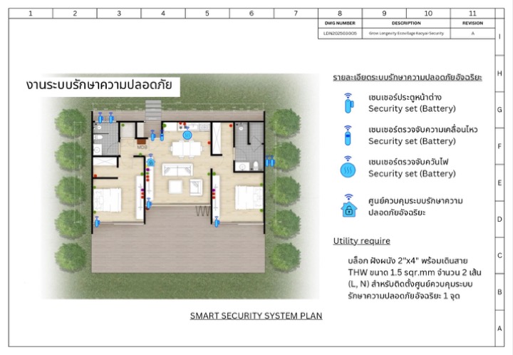 4. ระบบรักษาความปลอดภัยอัจฉริยะ (Smart Security System) บ้านทุกหลังมาพร้อมระบบรักษาความปลอดภัยครบวงจร ทั้งเซนเซอร์ประตู–หน้าต่าง เซนเซอร์ตรวจจับความเคลื่อนไหว ระบบแจ้งเตือนเหตุฉุกเฉิน และศูนย์ควบคุมกลาง ช่วยดูแลความปลอดภัยตลอด 24 ชั่วโมง